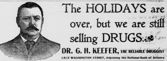 - And finally, who knows what this says about the holidays and how they were celebrated when this ad from Dr. G. H. Keefer could be found in the Arizona Republican newspaper on December 31, 1899, but it’s one of our favorites.